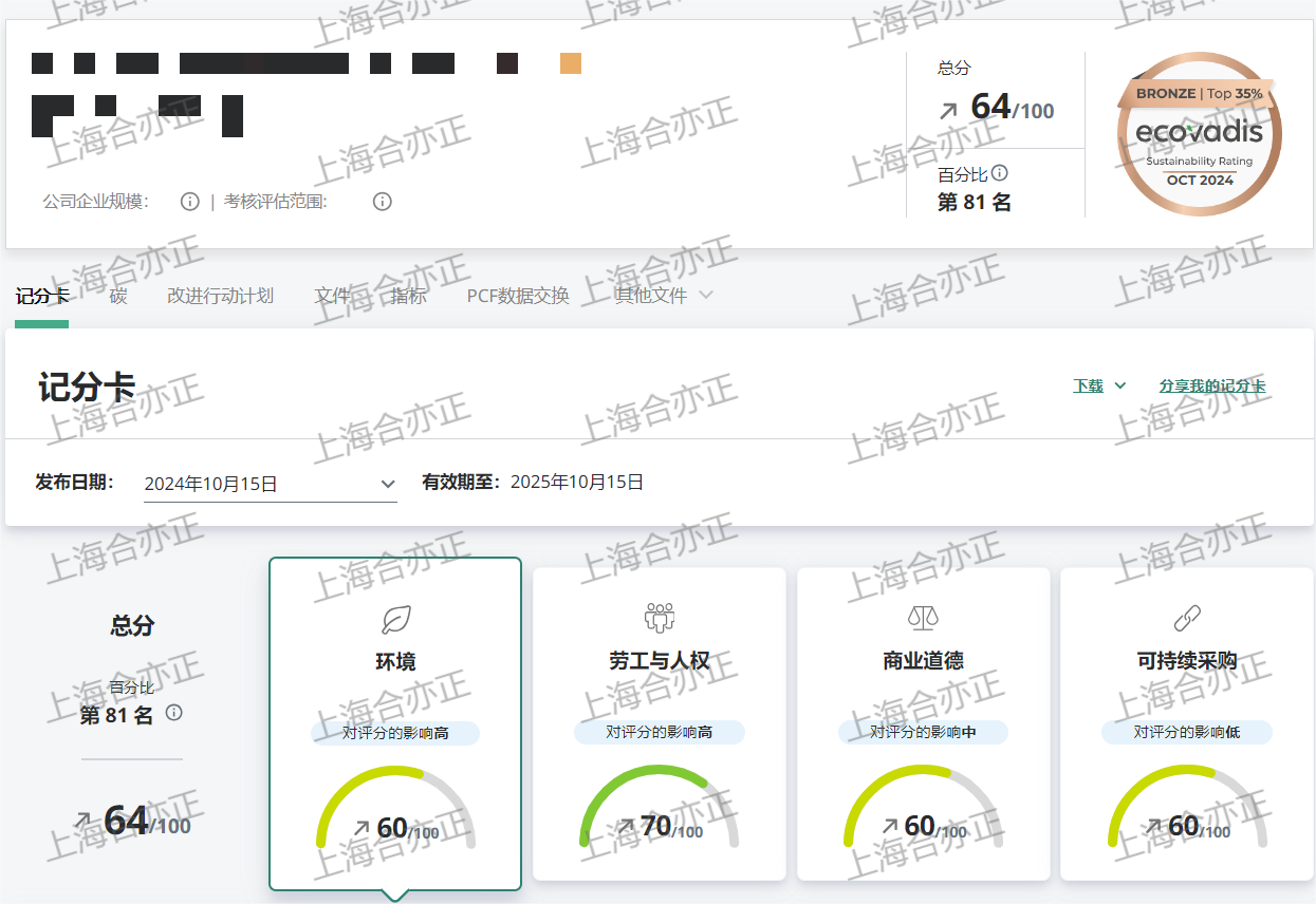 秋风送爽,硕果累累。合亦正在这金色的十月,分别帮助8家客户在EcoVadis评级中取得1金1银6铜的好成绩。这不仅是数字的积累,更是企业在社会责任和环境保护上深耕细作的见证。